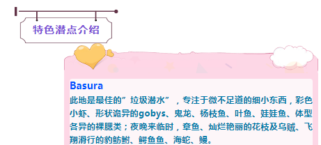 Koala 此潜点适合初学者和热衷于水下摄影的潜水员,这里常有绿海龟、白鳍礁鲨,乌贼、豆丁海马是这里的常客,也适合夜潜